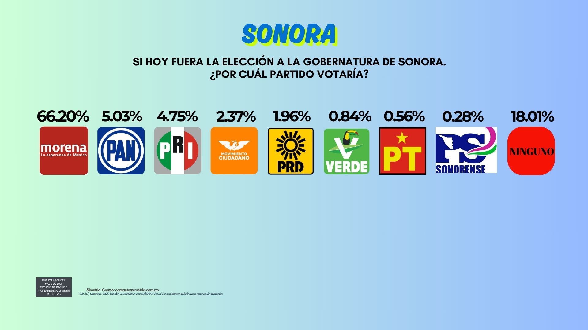 Presentamos el resultado de la última encuesta telefónica Vos a Vos a números móviles y fijos en el Estado de Sonora. México. Periodo de levantamiento: 24 al 30 de maYo 2025.